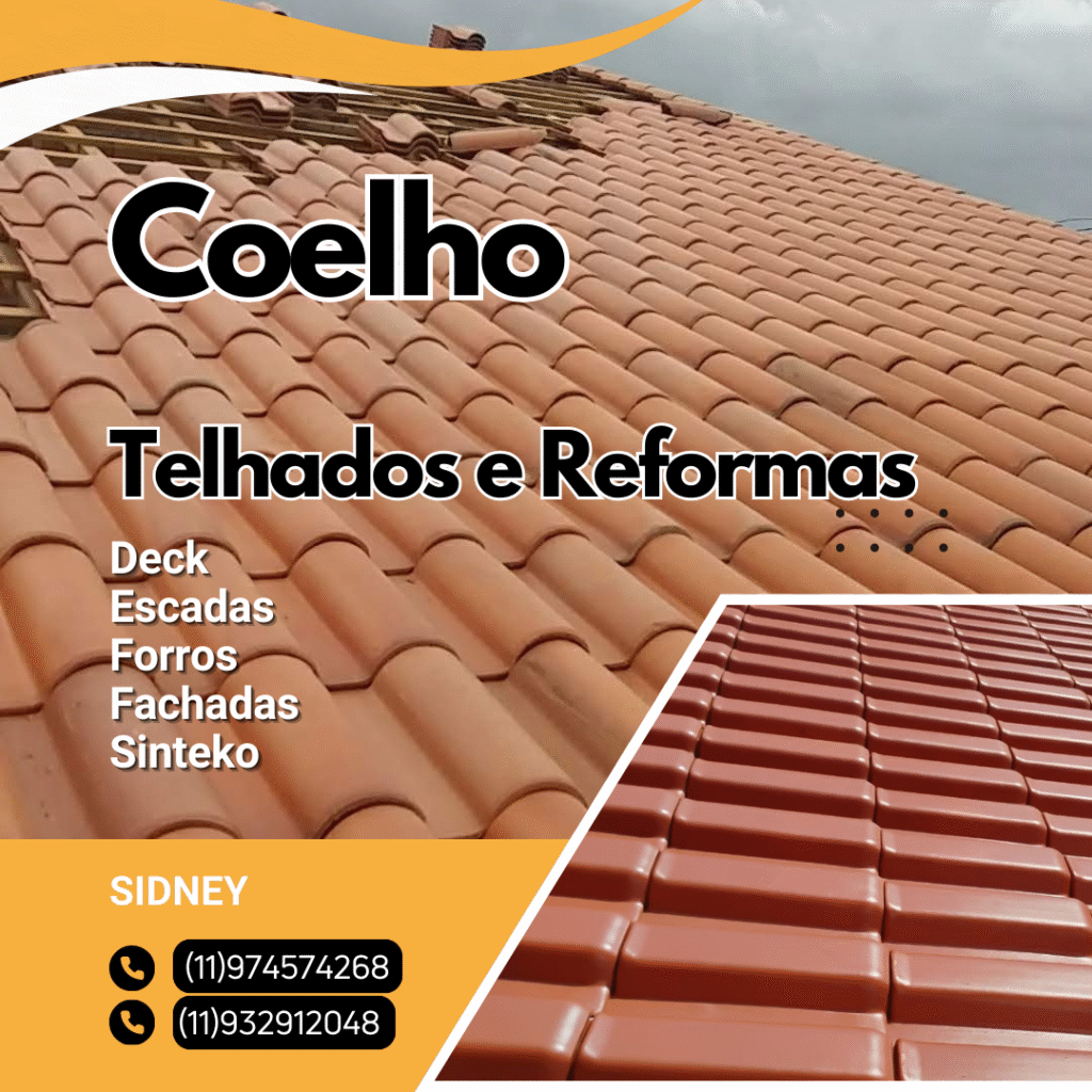 Construção e reforma de telhados, deck, escadas, forros, fechadas e sinteko.
